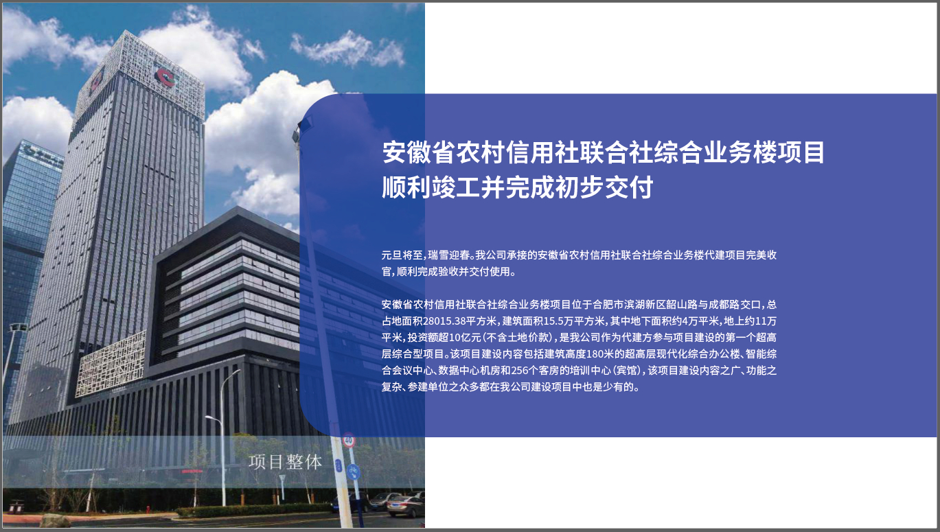 安徽省农村信用社联合社综合业务楼项目顺利竣工并完成初步交付
